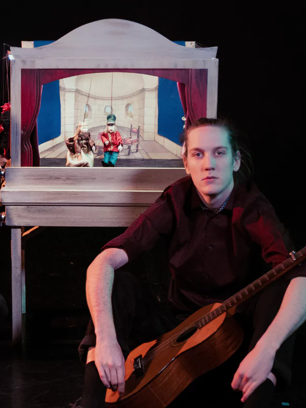 Előadásainkban a klasszikus marionett- és vegyes bábtechnikák találkoznak saját szerzeményű, zenével. Több zenésszel dolgozunk együtt, így minden produkció egyedi hangulatban születik meg. Az élőzene fontosságát hirdetjük – a történet része, éppúgy, mint a báb, a fény vagy a mozdulat.