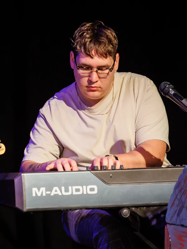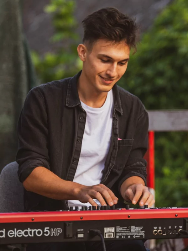Alapító tagként nemcsak zenél, hanem aktívan részt vesz az előadások kreatív alakításában is. A zongorától a gitárig minden hangszeren mesélni tud.