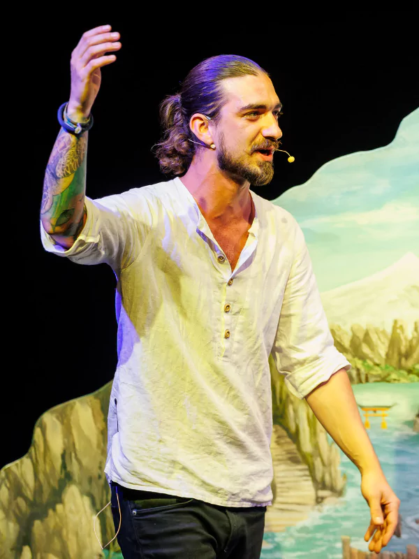 A Kámfor előadásai mögött egy sokszínű, csapat áll – zenészek, mesélők és alkotók, akik minden hanggal, mozdulattal és bábfigurával a közönséget szolgálják. Ismerd meg azokat, akik a varázslatot életre hívják bárhol a világban.